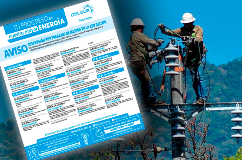 Nacionales Trabajos en red de DELSUR ocasionarán suspensión de energía lunes 10, noviembre 2025 - 4:02 p. m.