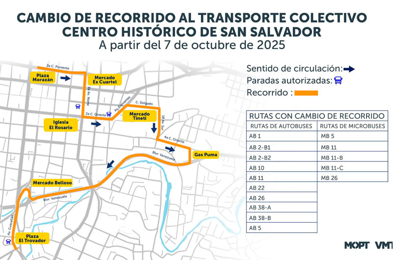Nacionales VMT anuncia cambio de rutas de buses y microbuses a partir del 7 de octubre lunes 6, octubre 2025 - 9:30 p. m.